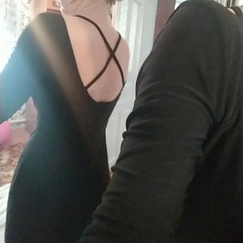 Елегантна чорна сукня. Гарно сидить по фігурі, тягнеться. Є підкладка. Спинка відкрита. Білизни не видно. Розмір с-м.