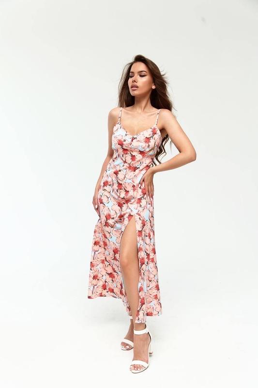 Платье миди с разрезом в цветочный принт