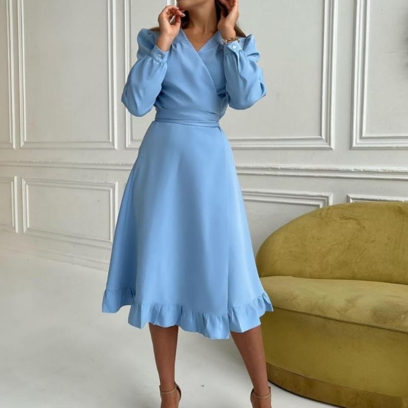 #Платье Артикул: 543-387 Цвет: желтый, голубой, молочный Размеры: универсальный 42-46 Материал: костюмка Платье идет на запах