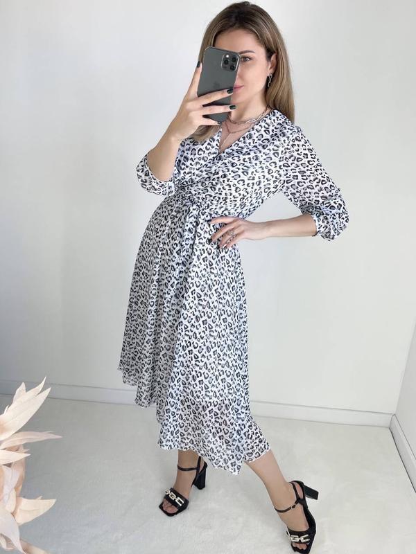 Платье Арт 432 Ткань шифон, подкладка вискоза Цвет коричневый леопард, белый леопард, чёрная зебра, белая зебра Размер 42-44,46-48,50-52 Цена 645 грн Платье миди, грудь на запах, талия на резинке, рукава на манжете (застёгиваются на пуговицу)