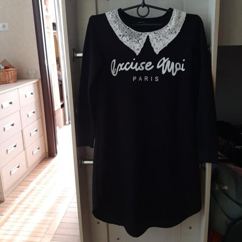 Новое черное платье с воротником Размер S Длина от плеча 82 см, длина рукава 52 см Состав на фото Отправляю наложеным платежом Новой или Укр почтой, Джастин За дополнительной информацией пишите