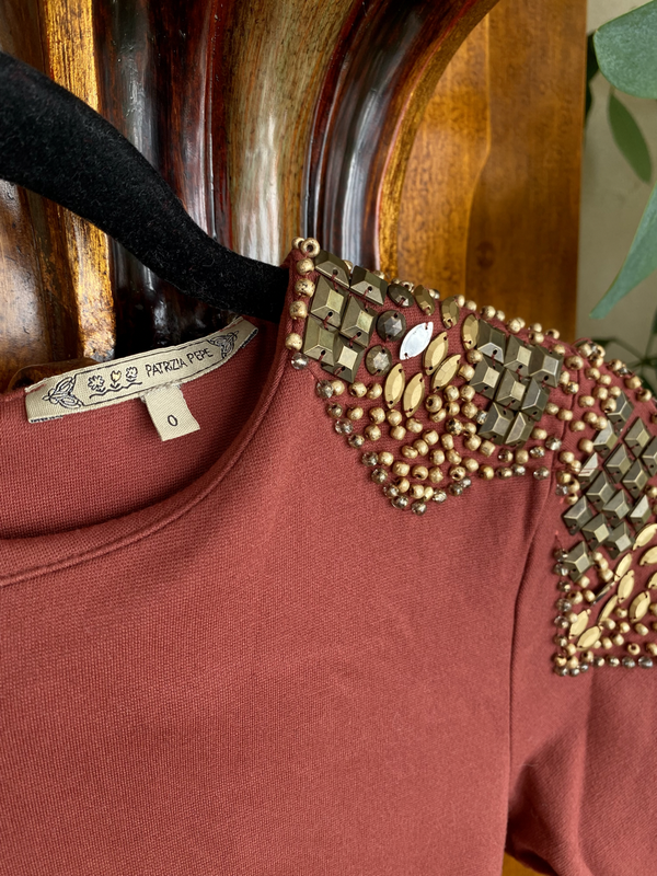 Щільний матеріал, вдалий крій, що підкреслює фігуру. На плечах декоративна вишивка кулочками. Змійка на спинці, щоб зручно було одягати.