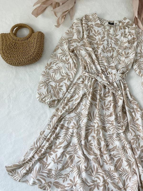 Платье арт. ha. 323 Ткань: софт Цвет: чёрный, бежевый Размер: 42-44, 46-48, 50-52 Платье длина миди, рукав и талия на резинке, в груди на запах. Пояс идёт отдельно, не пришит к платью.