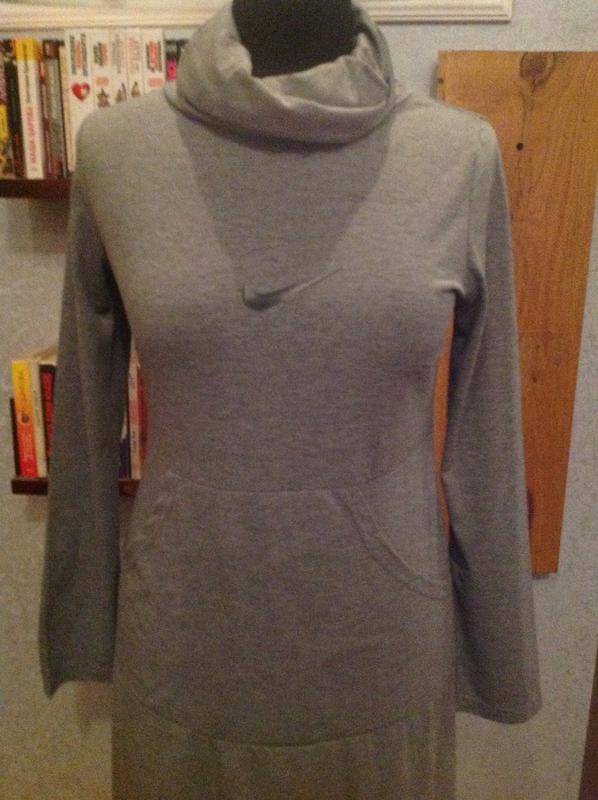 Трикотажное платье -кенгурушка, р. 46-48 Состав: качественный не толстый трикотаж (бирка с составом срезана) Мерочки: ПОГ 48см +выточки (тянется до 50см), ПОТ 41см, ПОБ 50см, рукав 60см, в плечах 38см, длина по спинке 128см. На груди аппликация - логотип бренда Nike, большой ворот - хомут, карман -кенгурушка. Платье новое, но все бирки срезаны, покупала здесь, но вместо моего размера продавец прислал этот и исчез навсегда с радаров.