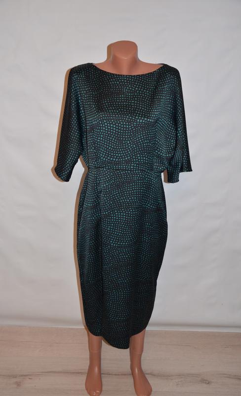 Платье из плотного шифона с разрезом по ноге "Warehouse" размер-14 состав: 100% полиэстер состояние-новой вещи (рукав-42, подмышки-51. талия-завышена-43, бедро-57, длина-115, длина от плеча до талии-39)