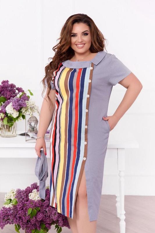 Распродажа Платье на пуговицах. Фото реальные! Мод: vuwe0189 Ткань: однотонный лён + лён полоска. Размер: 48-50 , 52-54, 56-58. Цвета: розовый , оливковый, серый. Пуговицы не расстёгиваются. Длина изделия : 118см. Дл. Рукава 15/16/17см. Ог. 110/118/126см. От. 106/112/118см. Об. 110/118/126см. Цена 410 грн. Категория: платья 48+