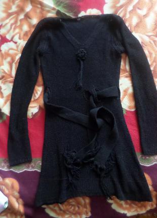 Вязаное платье в отличном состоянии (одето 2-3 раза) продаю т. к. поправилась. Может пойти и как туника под джинсы и лосины, всё зависит какой вы комплекции и роста. Длина-75, ПОГ-34, ПОТ-28, но очень хорошо тянется. В области талии есть поясок. Декольте декорировано цветком. Смотрите другие мои обьявления, разгружаю шкаф..
