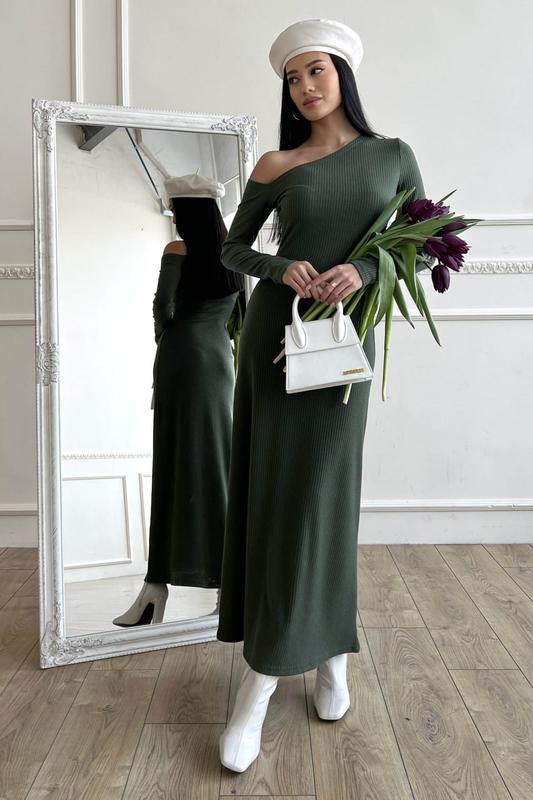 Сукня-міді з відкритим плечем стилізована асиметричним вирізом з боку Матеріал: трикотаж рубчик Склад: 90% бавовна, 8% інші волокна, 2% еластан Розмір: S, M, L, XL Доступно в іншому кольорі Зріст моделі: 170 см Параметри моделі: 86-64-93 Розмір на моделі: S (42/44) 📦 Доставка Новою Поштою, Укрпоштою 🙌 Накладений платіж ♻️ Є обмін