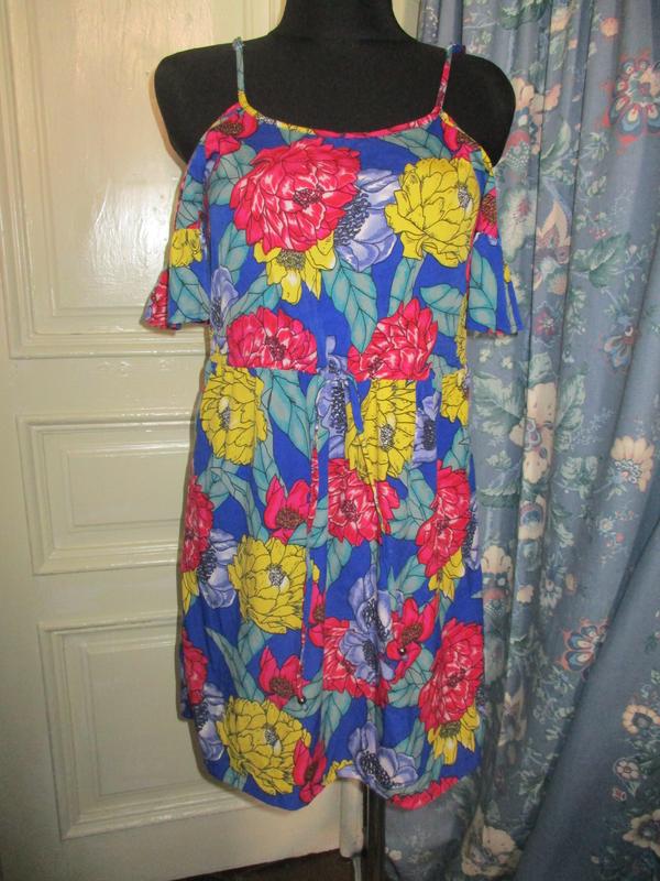 платье цветное.полиєстер.ПОГ 4.ПОТ 43.ПОБ 55.на талии стягивается.длина 88см