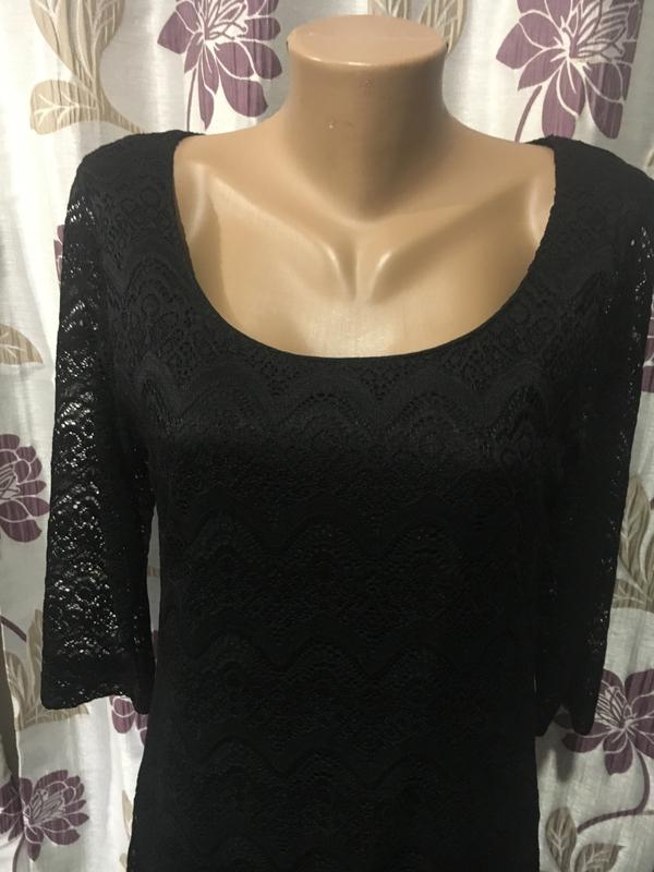Гарне, елегантне плаття чорного кольору. Ажурне на підкладці. Розмір М ПОГ -46 см ПОТ - 45 см ПОБ - 50 см Довжина 99 см Довжина рукава -44 см
