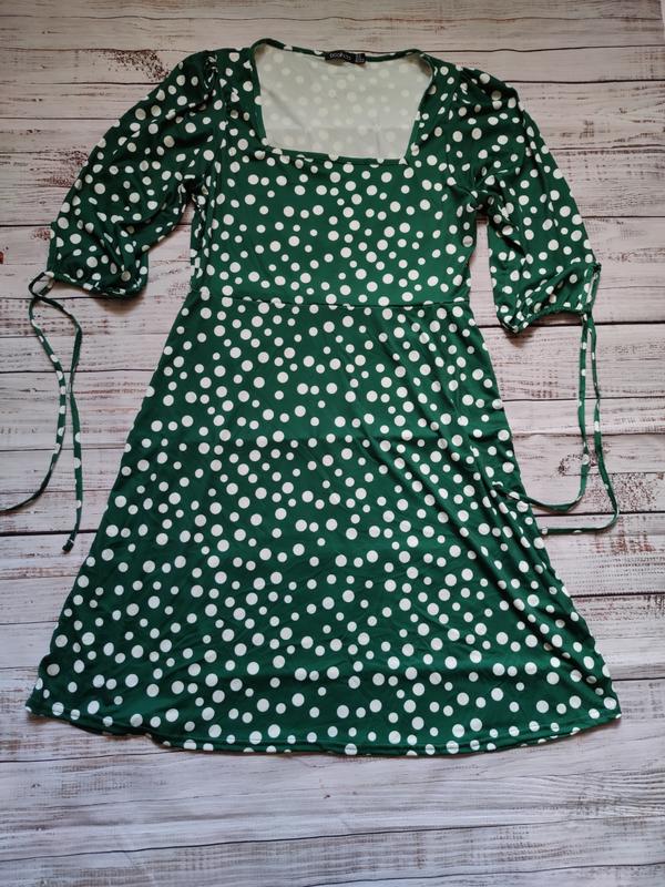 Фірмове плаття, стан нового (не носився), з глибоким декольте. Підійде і на розмір S і на М. Рукава три чверті на зав'язках. В талії вільно сидить, не обтягує, довжина міді. Легке, не мнеться