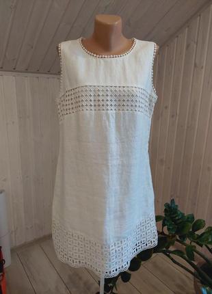 Лляне плаття Next зі вставками прошвы,по бірці розмір 14UK 42EUR. Стан ідеальний. Дл.86см пог 49см піт 48см побіди 54см
