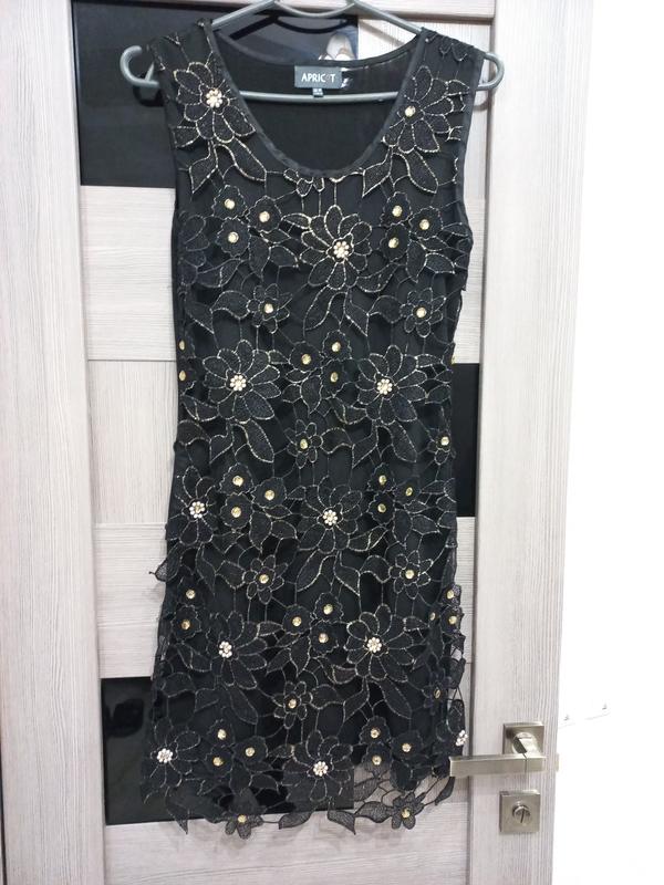 Плаття чорного кольору з вишуканим гіпюром. Розмір 44.