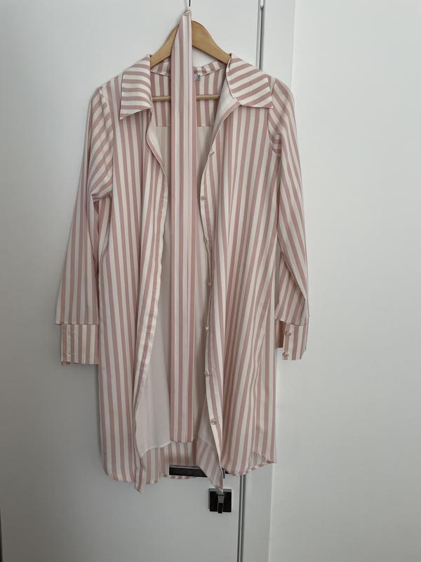 Сукня-сорочка у біло-рожеву смужку з поясом, у відмінному стані, одягнута лише раз, розмір М