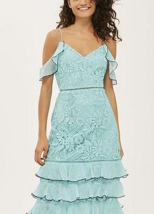 Сукня міді з мережива розмір с 10 колір бірюза