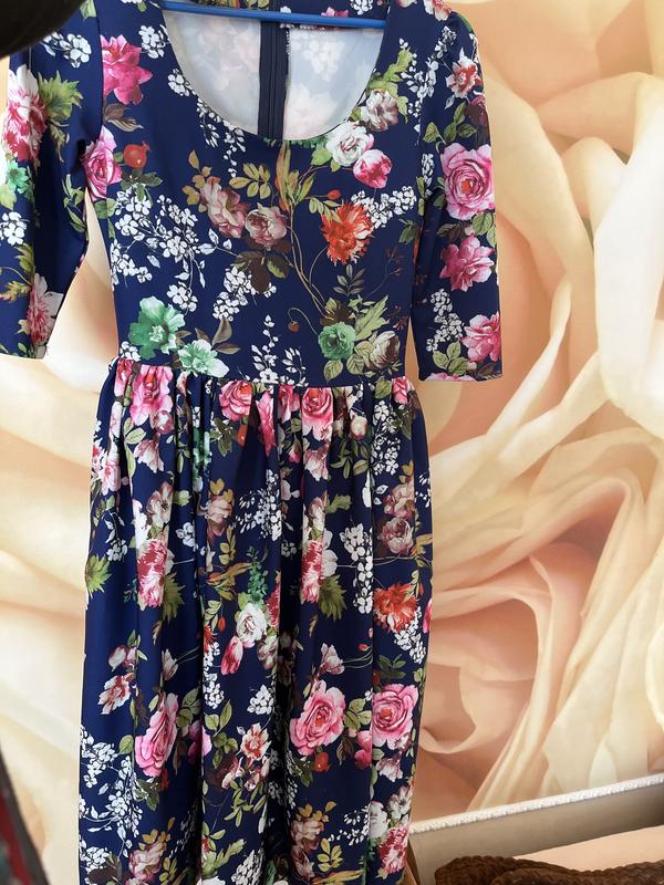 Гарне квіткове плаття, довжина міді, розмір 42. Тканина здається креп костюмка.