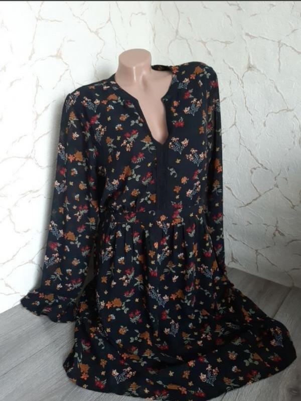 Платье миди/ короткое чёрное в цветочный принт,52 р.