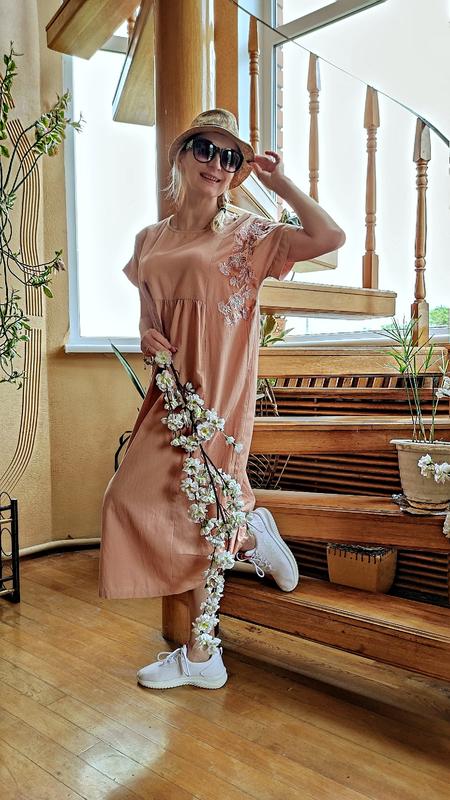 Оригинальное, летнее платье свободного кроя в стиле бохо. Производство Индия. Украшено вышивкой. Карманы в рельефных швах.