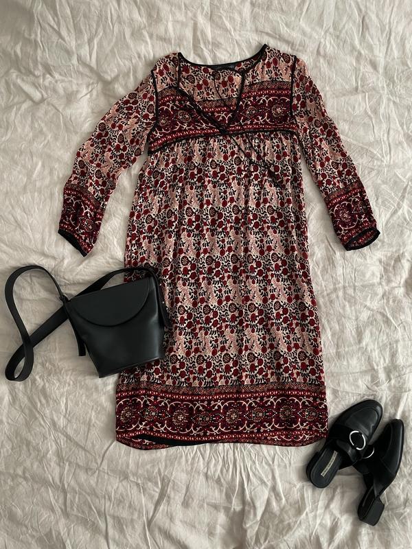 Платье Zara в этническом стиле с подкладом. Размер XS, в меру просторное. Длина от плеча - 107см. Материал : 100% полиэстер. Дополнительные фото по запросу.