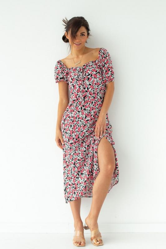 Цветочное платье миди с завязкой