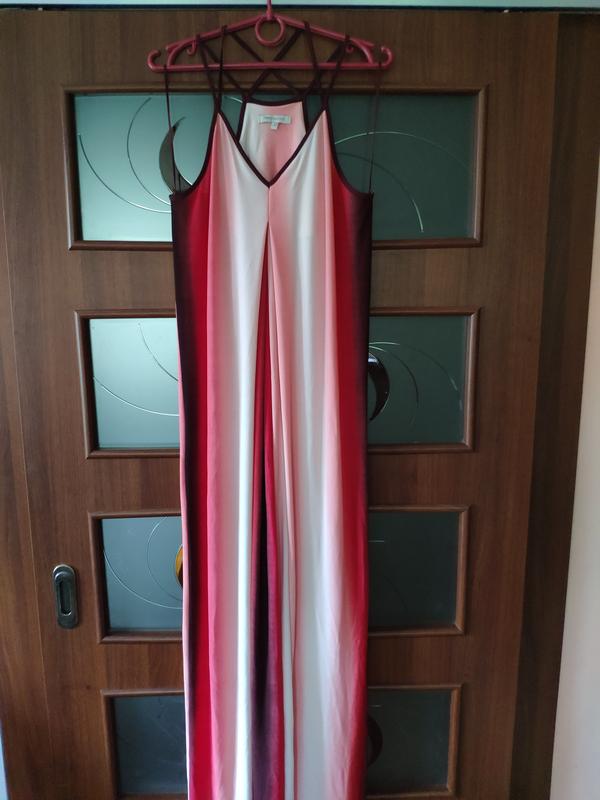 Дуже оригінальний сарафан, поєднання кольору вдало, збоку розпірка. Довжина 152 см