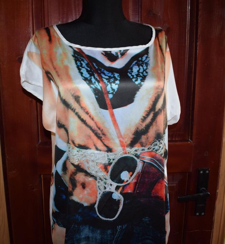 Красива блузка -туніка 48/5 Оригінально пошито. Тканина тягнеться. Колір різнобарвий виробник Турція. 100 поліестер, окружність грудей:110 окружність талії: 106 окружність бедер 100 довжина виробу:68 рукав 63,5