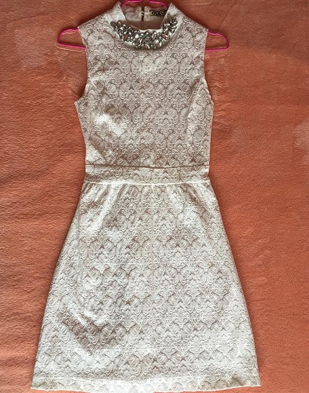 Сукня жіноча, хорошої якості. У складі турецький бавовна. Довжина сукні до коліна, рукави відкриті, на шиї прикраси з камінням.