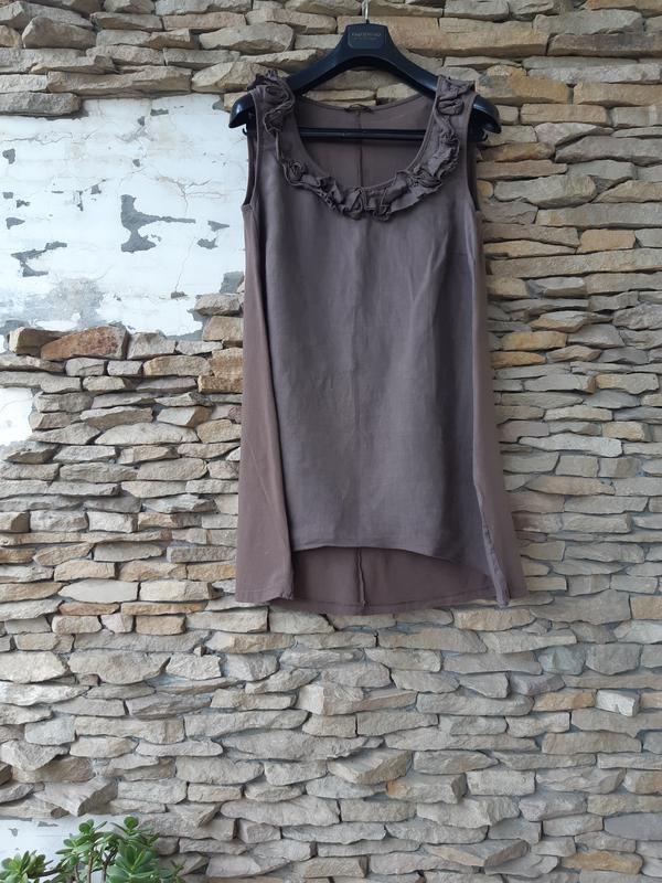 Длина спереди короче,чем сзади 76/82 ПО под мышками 52 тянется ПОТ 57 тянется ПОБ 65 тянется Перед лен,спинка котон