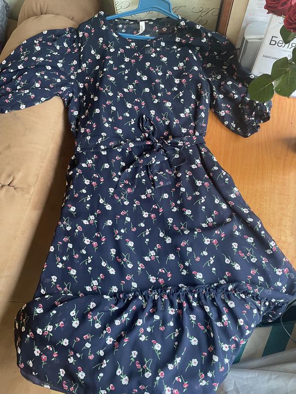 Отличное , яркое платье на весну лето . Состоит из 2 частей , подкладка платье чёрного цвета и сверху полупрозрачный материал в цветы с поясом . Было одето 1 раз , не подошла модель