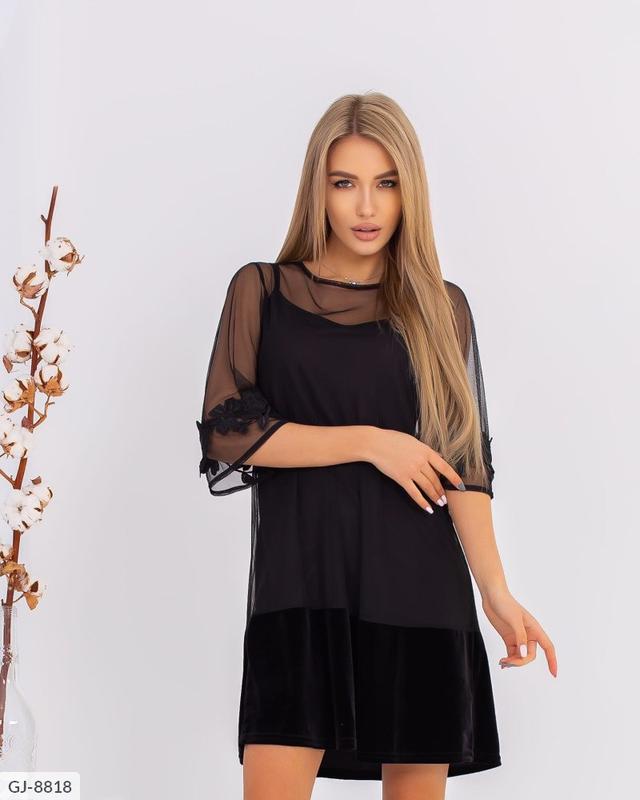 модель: 8442 - код виробника; Плаття GJ-8818 Ціна: 435 грн. Розміри: 42, 44, 46, 48 Тканина: на підкладці стрейч, сітка основа, велюр. Обробка мереживо Заміри: Довжина 86 см Довжина рукава 42 див.