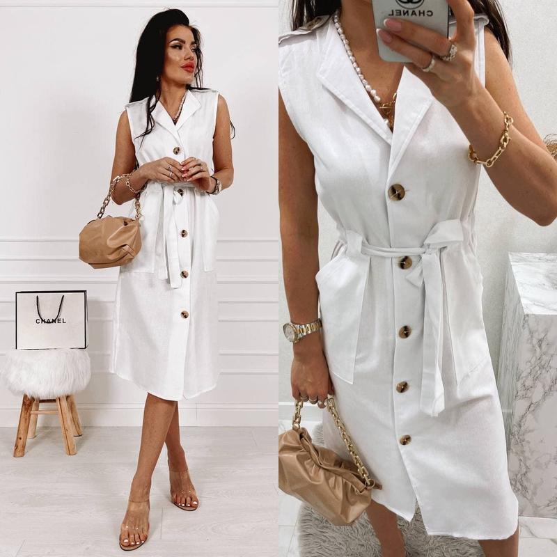 💣💥💣В НАЛИЧИИ💣💥💣 ХИТ ПРОДАЖ 💣💥💣 🖤🤍🤍🖤 Платье-халат🖤🤍🤍🖤 Арт. SV 193cs Ткань: лен Цвет: белый Размеры: S, M, L, XL Цена : 440 грн. Описание: Стильное льняное платье-рубашка с накладными карманами. Модель без рукавов и застегивается на пуговицы по всей длине. По бокам разрезы.