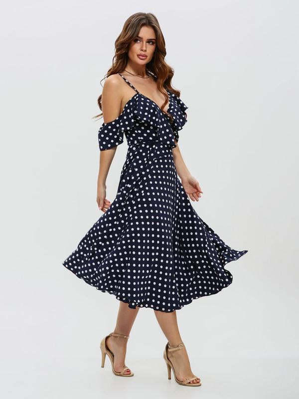 Красиве розкішне шикарне плаття міді плаття в горох довжина ефект від запахів по грудях йд...
