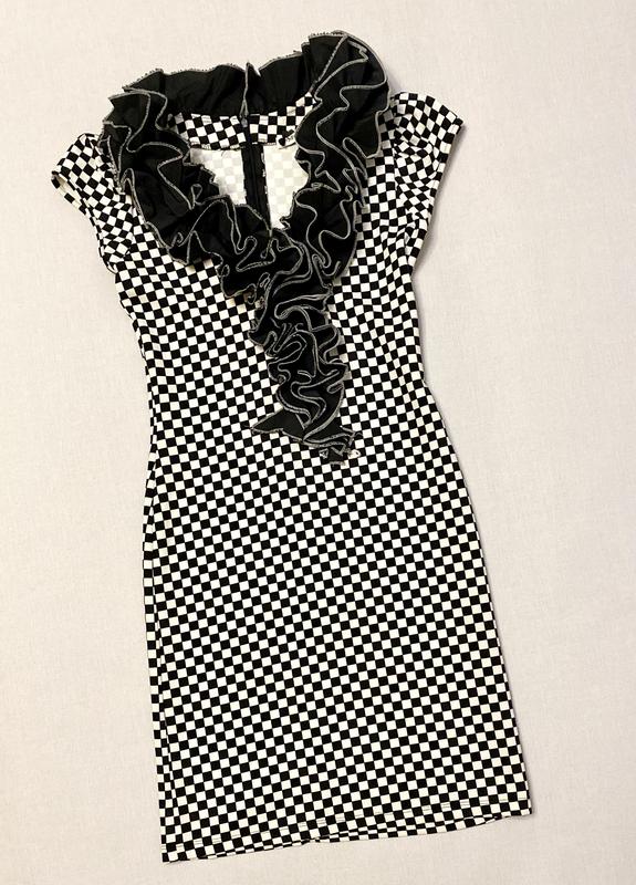 Сукня в чорно білий принт, гарно лягає по фігурі, добре тягнеться. Турецьке виробництво. Розмір на бірці 40. Заміри: напівобхват грудей 43 см., напівобхват бедер 47 см., довжина 96 см. Дивіться всі мої оголошення, є багато цікавого! Відправляю зручним для вас перевізником.