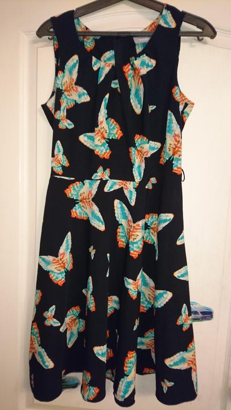 Отличное платье Wallis в бабочки 🦋. Смотрится превосходно. Размер 10. Пог 44 см, пот 39 см, поб свободно, длина от плеча 92 см.