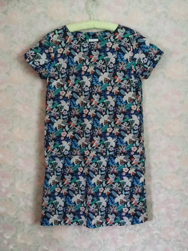 Легкое летнее платье итальянского дизайнера Robert Friedman цветочный принт с круглым вырезом, без подкладки. Спереди два кармана. Свободный крой. На груди выточки. Отличный вариант на лето. Состояние новой вещи. Состав: 100% хлопок. Размер указан ХS, но подойдет и на S и на небольшую М-ку. Лучше ориентируйтесь на замеры: Ширина плечи – 38 см ПОГ – 49,5 см. Ширина внизу – 60 см. Длина по спинке – 91 см Длина рукава – 16 см. Как выглядит на модели можно посмотреть на фото 2, 3 с другой расцветкой.
