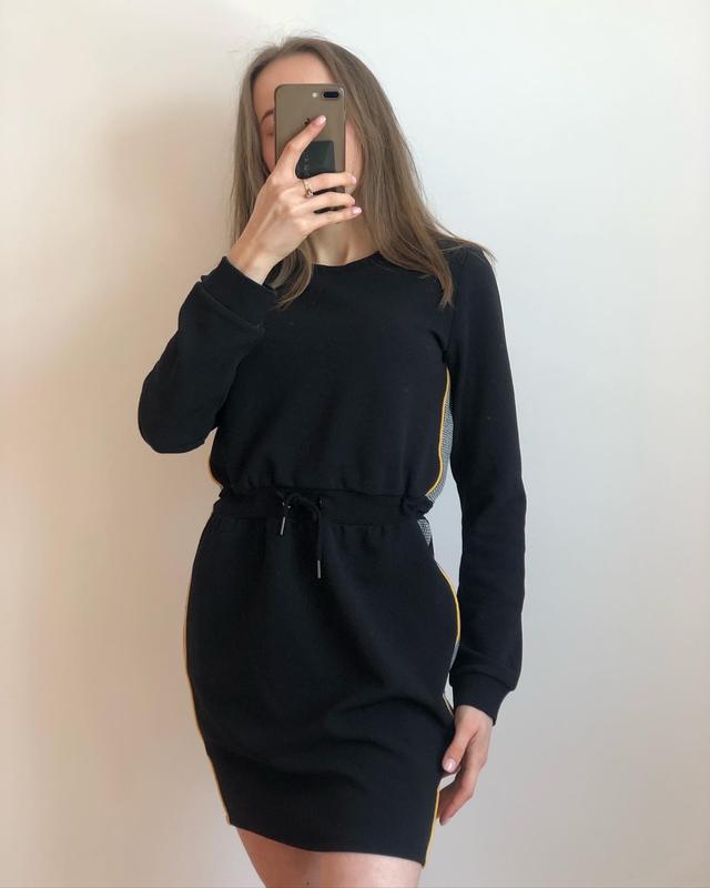 Чорна сукня з лампасами Пояс регулюється Стан ідеальний Підійде на розмір С-М