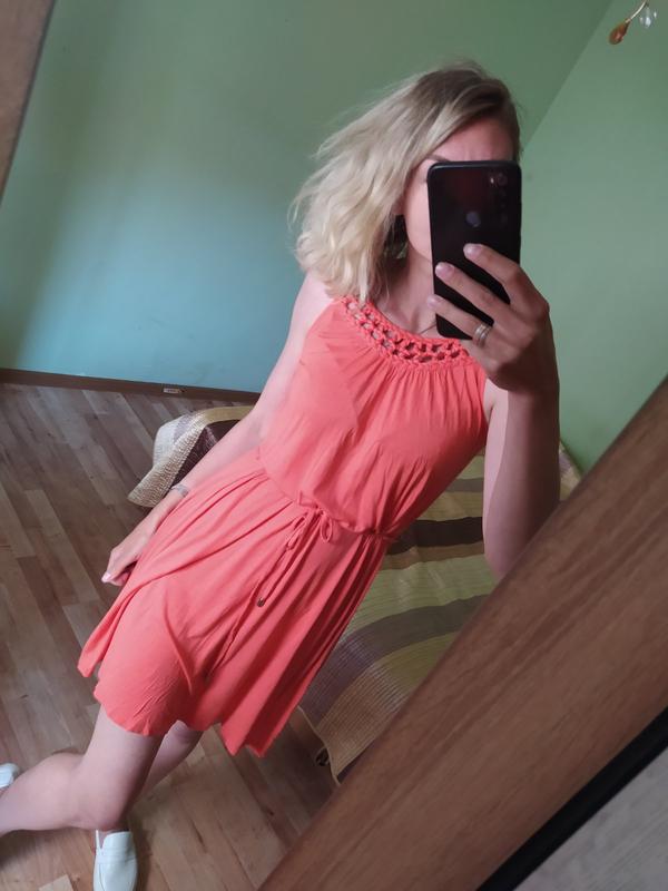 тоненькій, легкий трикотаж (віскоза 100%), коралового кольору, стан нової речі, без нюансів.НОГ 46,НОБ 58, довжина 98