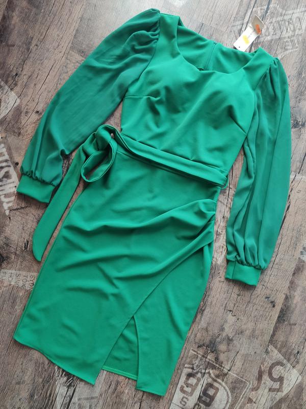 Дуже насичений "трав'яний" колір (ближче як на фото 8) Фасон елегантний по фігурі. Ефект як сукня на запах. Є вставки для грудей. Тонка, але тканина щільна, добре тягнеться. Рукава шифонові. Розмір не вказаний, орієнтуйтеся замірами. Довжина 98, плечі підійдуть будь-які, рукав від плеча 63, підмишки від 45 до 52, талія 32/тягнеться до 37, на менше регулюється пояском, бедра від 45/тягнуться до 52+ за рахунок запаху. _________________________________________ 🔥Повний РОЗПРОДАЖ🔥 залишків з трьох діючих магазинів‼️ Всі, практично, речі В ЄДИНОМУ ЕКЗЕМПЛЯРІ, розмірів немає.