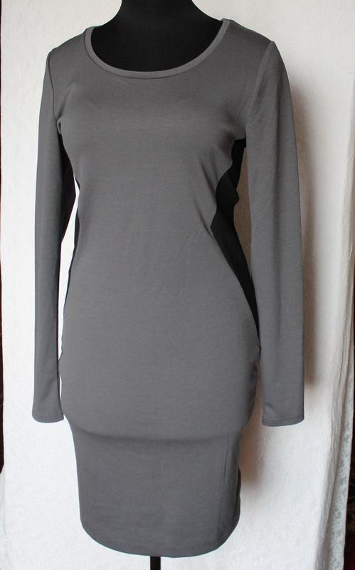 Платье темно серое с черными вставками,длинный рукав, , раз. М Made in Cambodta. Мерки плаття ПОГ -45см ПОТ-40(39)см ПОБ-46см Длинна рукава-64см Длинна изделия-95см Материал-плотный трикотаж Цвет серый чёрный, Размер 170\96А Ещё Платья миди H&M