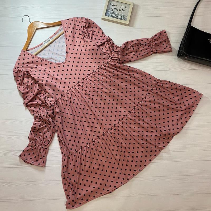 Платье розовое в горох от IN THE STYLE ✖️Размер: UK 14 ; EUR 42 ✖️Замеры: длина 91см, длина до отрезной линии 35см, рукав 66см, ширина плеч 42см, пог 55см, пот 50см, поб 75см ✖️Состав: полиестер 95; еластин 5