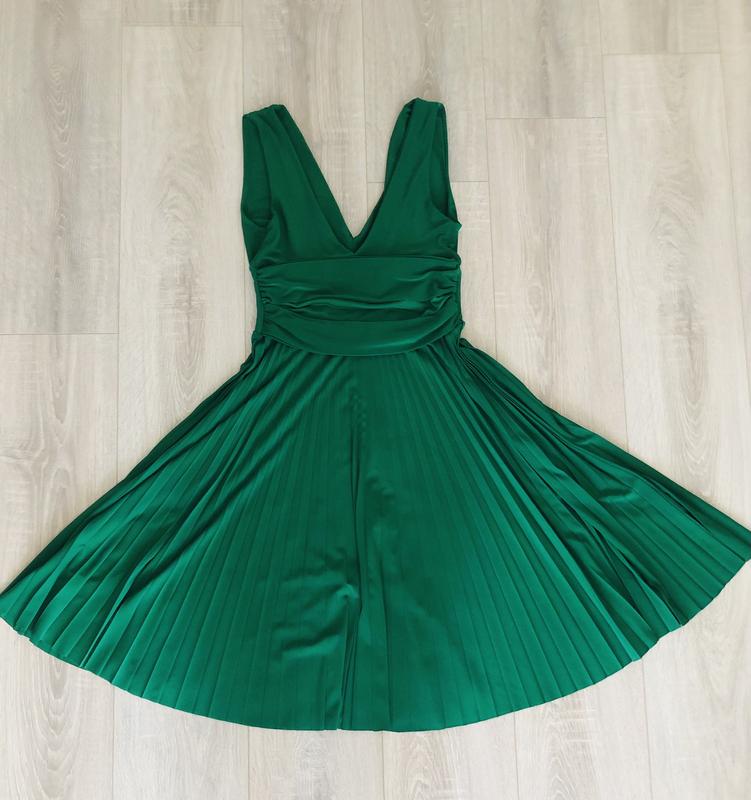 Ярко зелёное летнее платье с плиссированной юбкой,эффектно смотрится на фото.