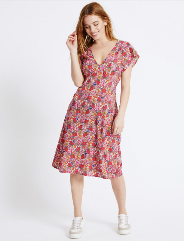 Це легке плаття, яке ідеально підходить для літа, з маленькими рукавами-крильцями. Довжина 101 см ПОГ - 60 см ПОТ - 56 см ПОБІДИ - 67 см ширина низу напівобхват - 81 см довжина пройми - 26 см