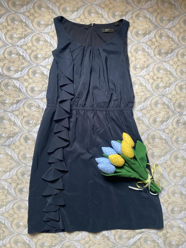 Темно-синя сукня оригінального дизайну. Справа - рюшка на всю довжину, колір і тканина дуже приємні, легка і вільна