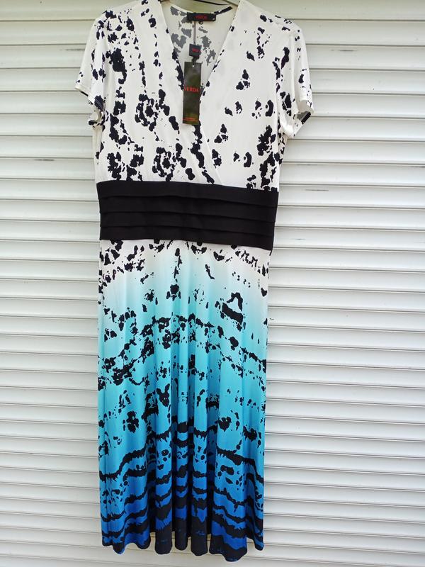 Платье Verda, Турция. Модель красивого силуэта. V-образное декольте, драпировка по линии талии. Юбка расклешенная, ткань полиэстер с ликрой, купон. Юбка на подкладке. Размер 42 (на 48). (есть такое же, в розовом оттенке)