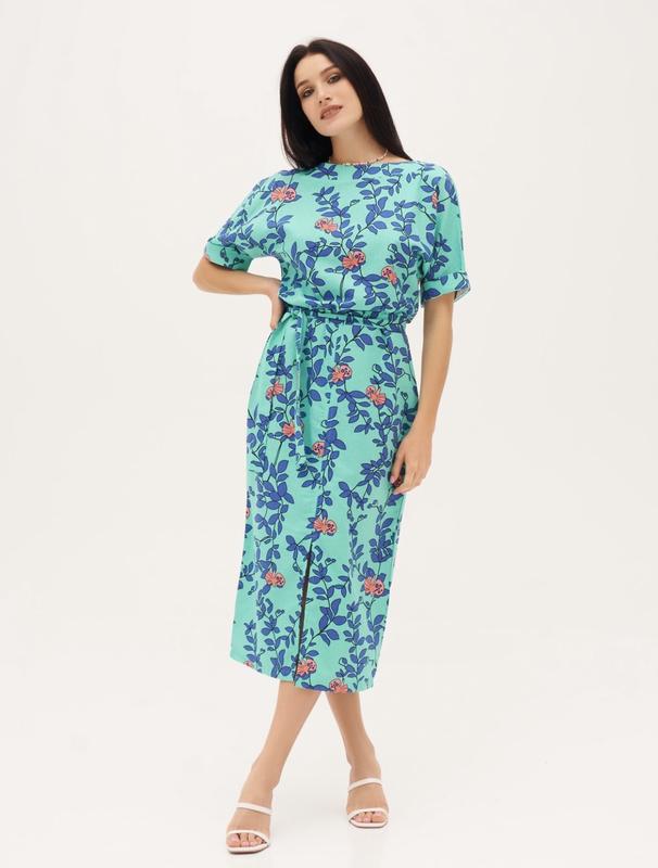 Мятное платье миди принт цветы
