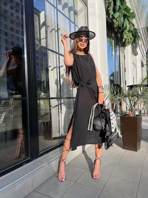 Платье арт. sat. 5320 Супер классное и лёгкое платье Размеры: 42-44 и 46-48 Материал: американский креп (качественный, натуральный, лёгкий и приятный к телу) Цвета: чёрный, голубой, бежевый, трава и белый Модель свободного кроя, по бокам разрезы, в комплекте поясок. Супер качество.
