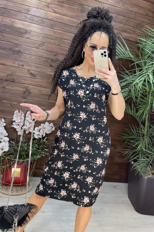Платье цветочный принт легкое летнее миди батал