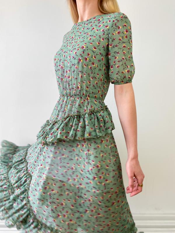 Шифоновое платье миди в цветочный принт фисташкового цвета