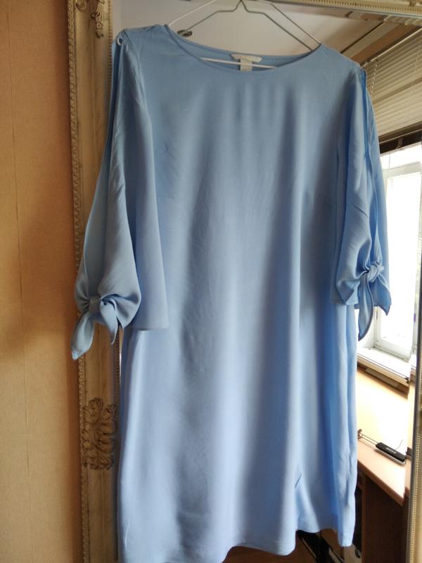 блакитне ( 2 фото), Дл-93, ПОГ-52, стегна вільно, рукав-38, розріз на зав'язках, розмір 40,віскоза 100%