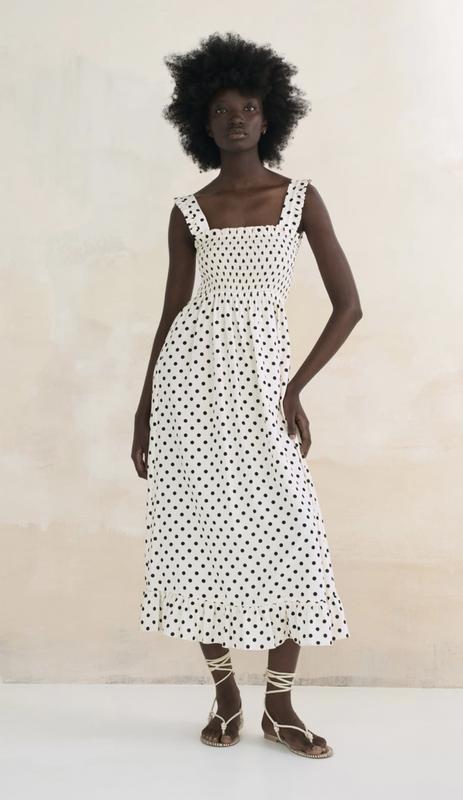 Новенька неперевершана сукня Zara в горох, дуже легка та приємна до тіла тканина. З бірками✔️ Тканина: 60%віскоза, 30% бавовна, 10% льон